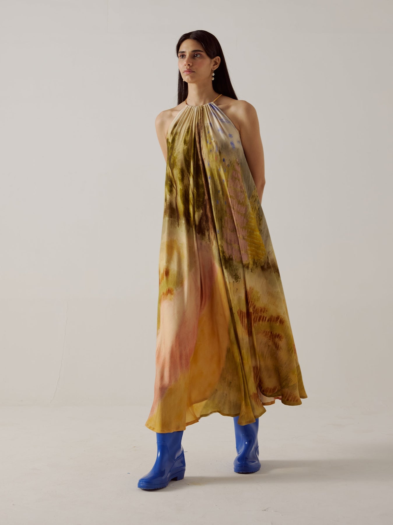 The Ravine Dress redefines elegance with its A-line silhouette and side pockets, blending functionality with style. Made from cotton poplin in a unique dawn print, this dress is perfect for day-to-night transitions. Style it with ankle-length boots for a polished look or pair it with sneakers for a casual edge. Its versatility and comfort make it a wardrobe essential.