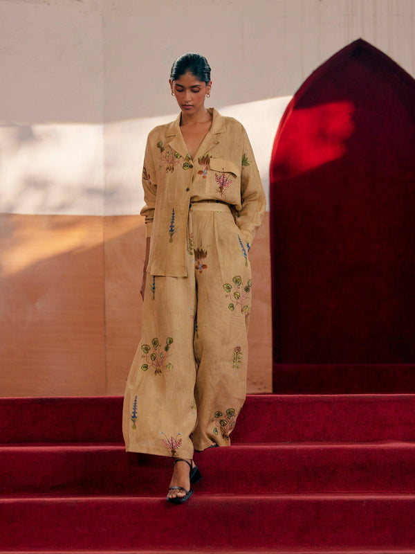 A tie-up shirt paired with drawstring pants is a great blend of comfort and structure for travel. The relaxed silhouette keeps you at ease during long hours, while subtle design details add a touch of style. Adjustable drawstring pants move and sit more comfortably, creating an airport look that feels as easy as loungewear but still looks neat and put together.